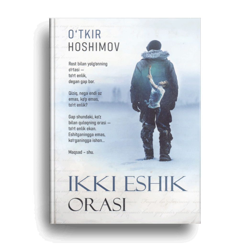 O’zbekiston xalq yozuvchisi O’tkir Hoshimovning «Ikki eshik orasi» romanini mutolaa qilgan yosh kitobxonlar ma’naviy olami shunga yarasha bo’ladi. Ushbu nashrning o’ziga xos jihatlaridan biri shundaki, u o’zbеk tilining hozirgi imlo qoidalariga to’liq moolangan shaklda berildi.